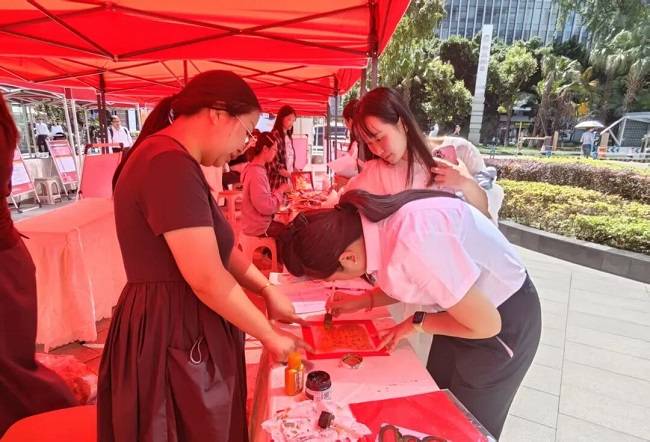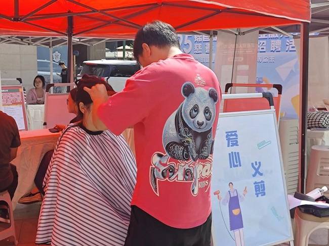 活动现场设置了公益服务区与手工体验区,这也是此次活动的特色亮点。新桥口腔医院正免费为居民测量血压、检查牙齿,隔壁义剪摊位前也排起了队。现场还安排了“福字拓印”“扭扭棒DIY”“串珠手工”等趣味互动项目,吸引不少求职者驻足体验,增强了活动的互动性和亲和力,真正实现了“聚人气、暖人心、促就业”的多重效果。